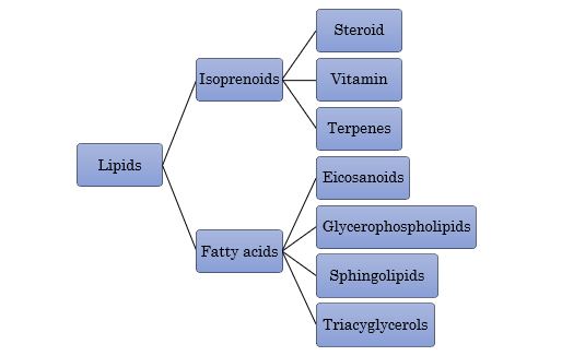 Generally, lipid is a group of compounds that is not soluble or partially soluble in water. Together with protein and carbohydrate, it is a major constituent in organisms and possess vital functions; energy stores, component of biological membranes and serves as signalling molecules. the classification of lipids is as illustrated in Figure 1.